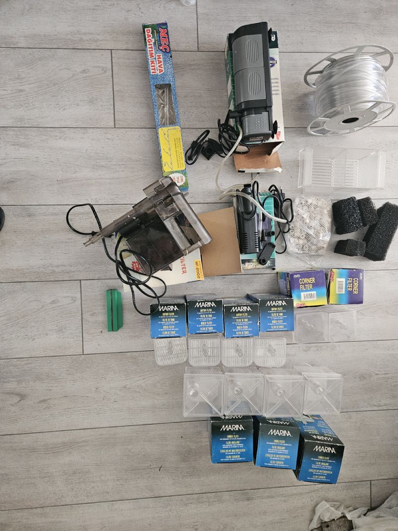 Adedi: 1 adet ATMAN ATF201+1adet ATMAN ATF 101+1adet Resun 2002 Şelale filtre+10adet KUTU FİLTRE(HAGEN ve ÇİN)+20m ye yakın hava hortumu+500gr seramik makarna+1adet Canlı Doğuran yavruluğu+1 adet 10cm kuvvetlı cam temizleme mıknatısı+1 adet MEÇ hava kiti(kullanılmamış paketinde)+4 parça biolojik sünger.